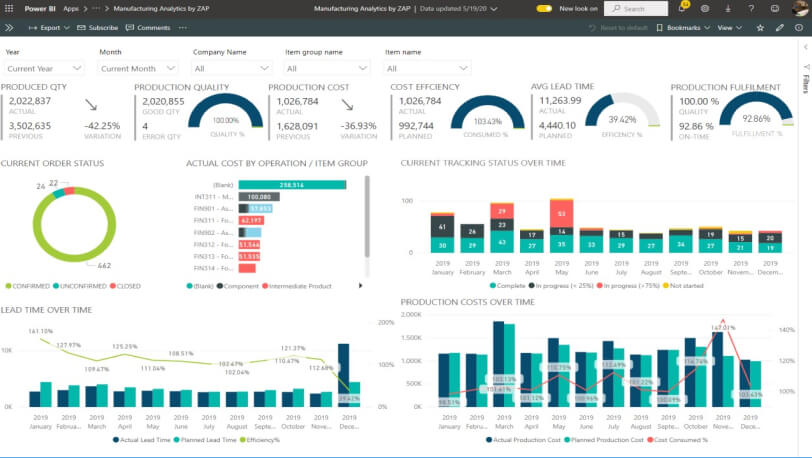 Az alábbi kép a Microsofttól származik és egy jól áttekinthető termelési dashboardot mutat.