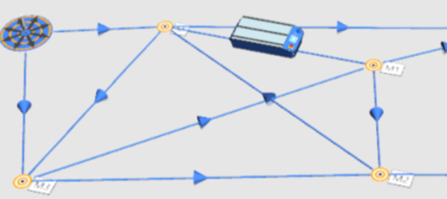 - A jelölőket összekapcsolva ezentúl lehetséges az AGV hálózaton, a célhoz vezető legrövidebb útvonal automatikus meghatározása (Dijkstra féle legrövidebb útvonalkeresés).