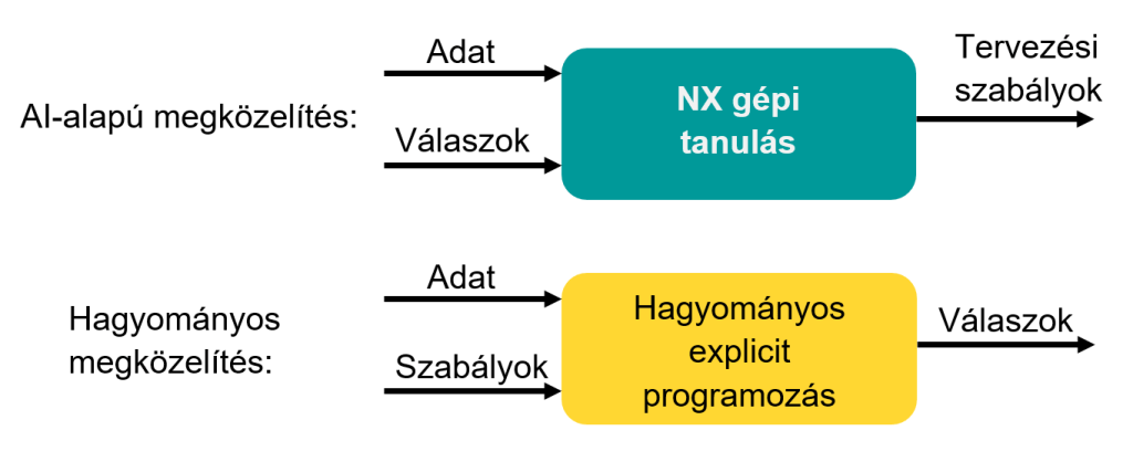 A programozók hagyományosan automatizálják a feladatokat programok írásával. A gépi tanulásban (Machine Learning) az NX olyan programot/szabályt talál, amely illeszkedik az adatokhoz.