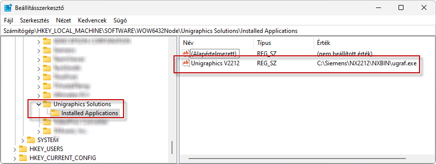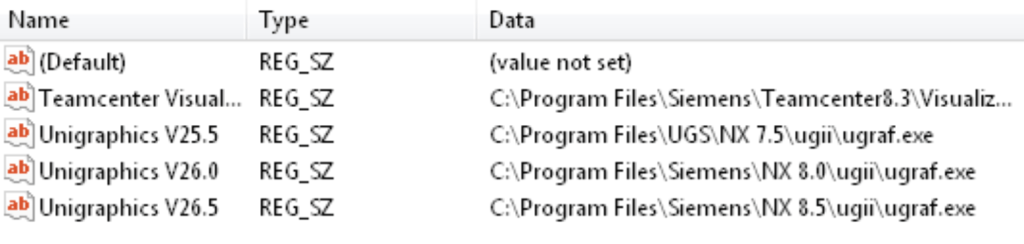 HKEY_LOCAL_MACHINE\SOFTWARE\Wow6432Node\Unigraphics Solutions\Installed Applications