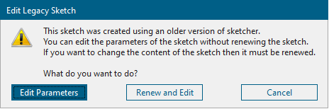 Ha egy klasszikus vázlatkészítővel készült sketch-et megnyitunk, akkor az NX felajánlja, hogy csak a vázlat paramétereit szerkesztjük, vagy átkonvertálja az új sketcher környezetbe.