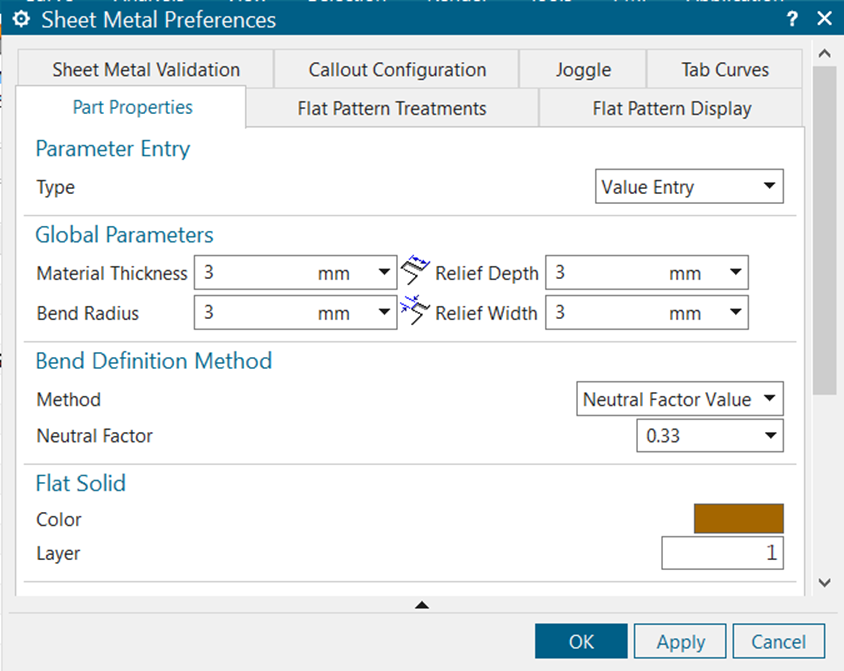 - Indítás előtt állítsa be a globális paramétereket! Ilyen beállítások például az alapértelmezett lemezvastagság, hajlítási sugár és még sok más. Természetesen a tervezés során az egyedi paraméterek használatakor módosíthatók, de célszerű lehet egy alapértelmezett értéket beállítani.
