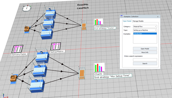 A Siemens Plant Simulation több mint 100, előre elkészített gyakorlati példán keresztül segíti a felhasználókat.