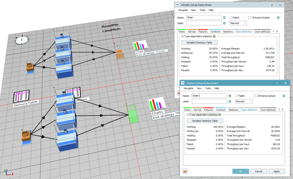 A szimulációt lefuttatva az Eventcontroller-el, nyissuk meg a Kimenet (Drain) objektumok Type Statistics menüpontjait.