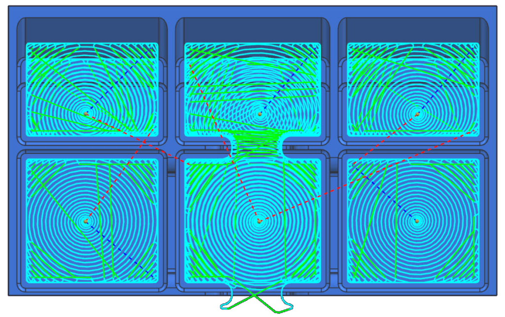 Furatmarás (Hole milling) művelet esetén, a ráállás (Engage) és leállás (Retract) beállítások használata javítja a szerszámpályák összekötését a forgácsolási szintek (Cutting levels) között, ezeken belül az új „Transfer Using Engage and Retract” beállítással helyettesíthetjük a gyorsjárati mozgást és így biztosíthatjuk a beállított előtolási sebességek közötti biztonságos átmeneteket. Furat megmunkálások esetén a relatív sík (Relative Plane) opcióval optimalizálhatjuk az összekötő mozgásokat egy zseben belüli furatok között – előnyben részesítve a biztonságot. Emellett a „Lowest Rotary” funkcióval – henger és gömb határfelület esetén – minimálisra csökkenthetjük a távolságokat a furatok és a közeli ütközési geometriák között. A forgácseltávolítás (Chip Removal) opció engedélyezésével – furatmarás (Hole milling) művelet esetén – növelhetjük a szerszám élettartamát, javíthatjuk a megmunkált felületi minőséget és biztosíthatjuk a hatékony forgácskihordást.