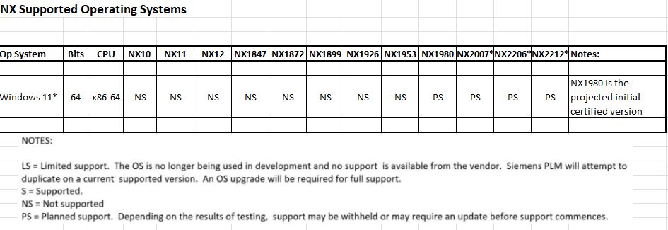 A támogatott operációs rendszerek és az NX verziók kapcsolatát ezen az oldalon, az „NX” alatti linken letölthető excel táblázatban követhetjük nyomon. Ebből látható, hogy az NX1980-as verziótól kezdve fogja támogatni a Siemens a Win11-et.