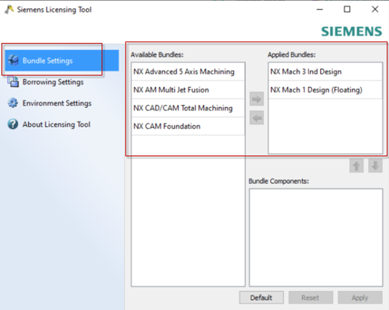 Ha mindig ugyan azt a csomagot használjuk, akkor „örökre” be lehet állítani a „Licensing Tool” (a „sárga kulcsos” program) segítségével , Windows Start > Siemens NX > Tool – Licensing Tool, majd a Bundle Settings opció :