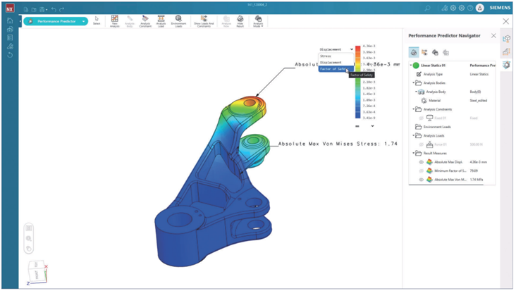 A program nagyobb pontosságú prototípusgyártást, adatközpontú döntéshozatalt és hatékonyabb együttműködést biztosít. Az NX X Essentials csökkenti a piacra kerülési időt és a költségeket, sőt, javítja a termékminőséget egy simább, iteratívabb tervezési és gyártási munkafolyamaton keresztül. Az NX X Essentials gyártási képességei automatizálják a 2.5-tengelyes CAM műveleteket, beleértve a homlokmarást, zsebmarást, kontúrmarást, horonymarást, fúrást, menetfúrást, élletörést és furatbővítést. Beállíthatja a vezérlést és egyedi szerszámokat hozhat létre, valamint a szerszámpálya szimulációt generálhat a pontos specifikációk teljesítéséhez. A 3D nyomtatás, vagy additív gyártás könnyebben elérhető a .3MF és .STL exportálással az Ön által preferált nyomtatóhoz. A böngésző-alapú hozzáférés rugalmasságot biztosít a megmunkálási és nyomtatási változtatások bárhonnan történő adaptálásához. A kritikus méretek ellenőrzése és validálása is elvégezhető a mobil 3D modell és rajz megtekintővel. Terveket optimalizálhat a nagy teljesítményű Performance Predictor szimulációval bármely eszközén. A kifejezetten tervezőknek szánt szimulációs eszközökkel az NX X Essentials segít validálni az anyagválasztást és a mechanikai teljesítményt már a tervezési folyamat korai szakaszában. Az alkatrészek különböző terhelések alatti gyors, felhő-alapú szimulációja automatikusan létrehozza és frissíti a 3D modellen megjelenített eredményeket, lehetővé téve a szimuláció-vezérelt tervezést. A megjelenített eredmények tartalmazzák a feszültséget, elmozdulást, biztonsági tényezőket, sajátfrekvenciát és termikus jellemzőket. Az előre definiált, valamint a felhasználó által létrehozott terhelések, kényszerek és anyagtípusok használhatók a lineáris statikus analízishez. A felhő erejét kihasználva az NX X Essentials nagy teljesítményű, megbízható szimulációs eredményeket szolgáltat bármely eszközön, és a tanulmányok skálázhatók az NX X-ben való használathoz.