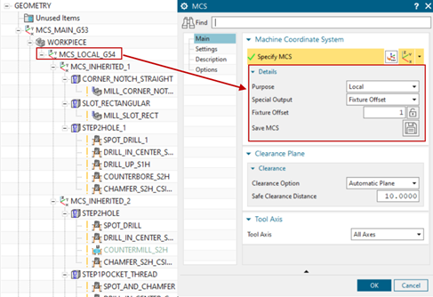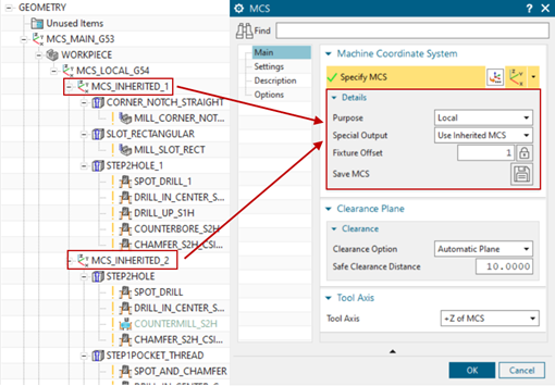 Az NX1980 -as verziójától kezdve a megmunkálási koordináta-rendszer (MCS) definiálása során egy új kimeneti típust tudunk használni. A Use Inherited MCS kimeneti típus választással, az NX1980 Operation Navigator hierarchiájában lévő szülő koordináta-rendszer adat örökítése most már lehetséges. Ennek eredményeként komplex munkadarabok esetén könnyen definiálhatunk több biztonsági síkot, miközben egy koordináta-rendszerben posztprocesszáljuk a műveleteinket.