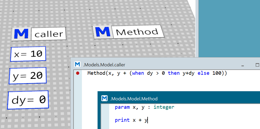 Method(x, y + (when dy > 0 then y+dy else 100))