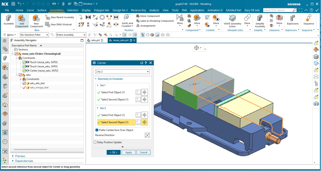 A satu elhelyezése a megmunkálandó alkatrész körül egy visszatérő kérdéskör. Már foglalkoztunk vele egy videó erejéig. A mostani cikkben végig vesszük azokat a lépéseket, hogy az NX Reuse Library segítségével, hogyan tudjuk hozzá adni a munkadarabhoz / megmunkálási összeállításhoz a satut, majd gyorsan be is állítani.