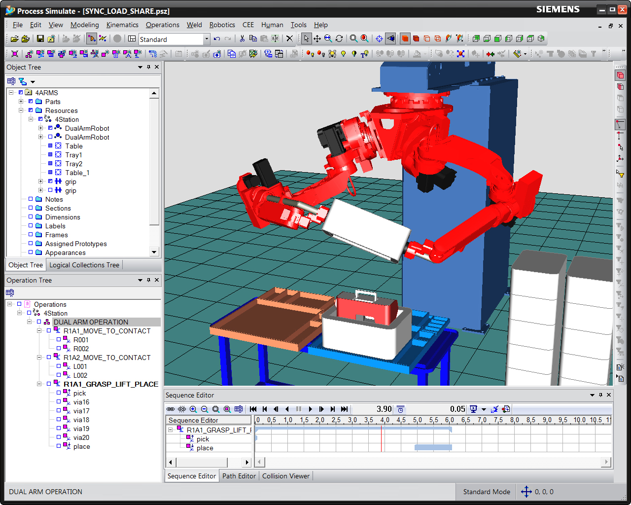 Hogyan működik: a robot programozás és szimuláció már bevált technológia az együttműködő robotok és készülékek programozására és szinkronizálására. A Tecnomatix 12 új lehetőségeket tartalmaz a legújabb dupla karú és együttműködő robotok egy egységként kezelésére.